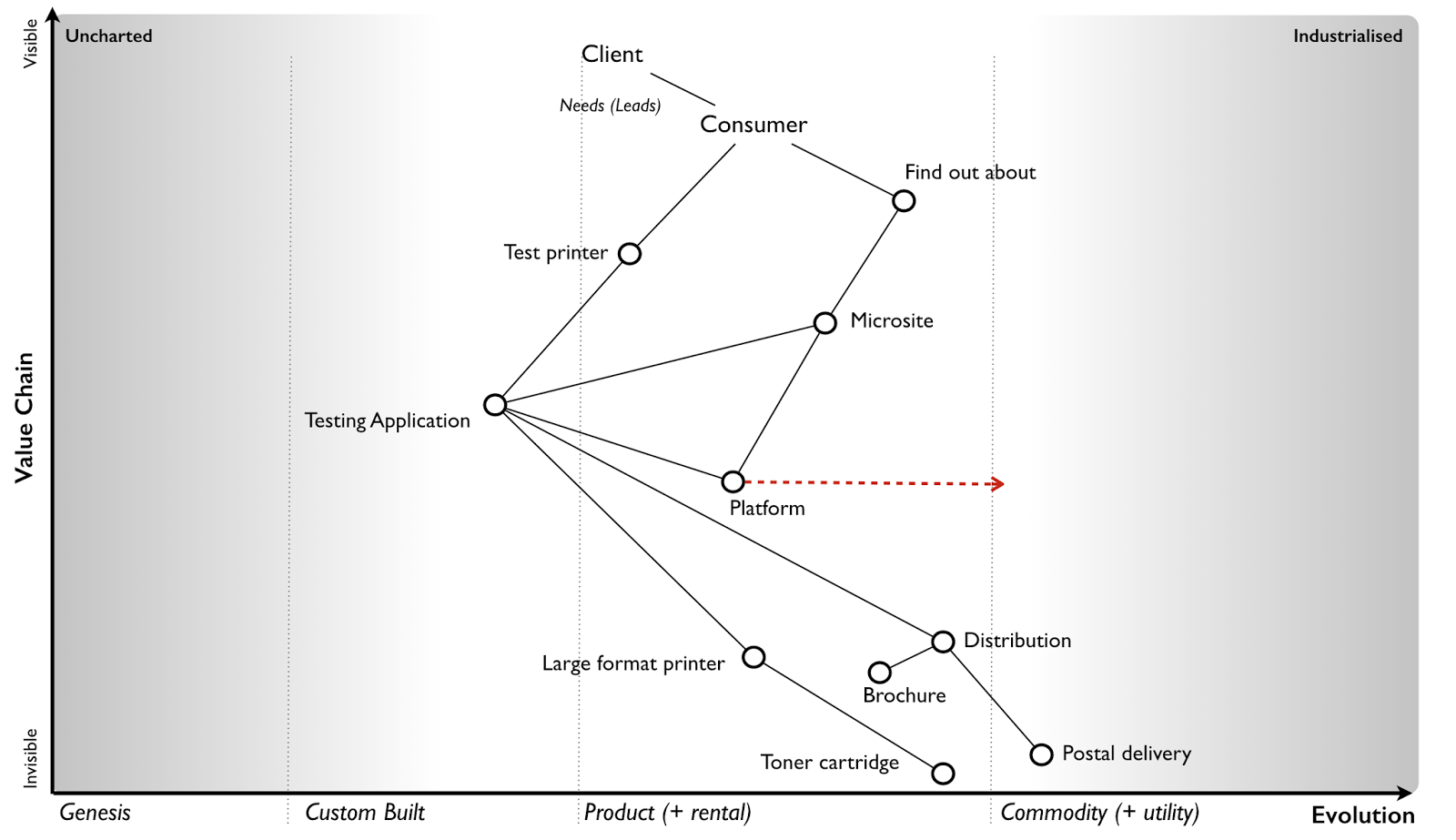 To recap, we need to understand the details and what is being considered (how evolved this). I've added that to figure 5. This is a Wardley Map.