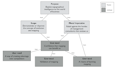 Now you have your users, you need to work out what their needs are. These you add to the map (figure 4) and fortunately, that's another principle ticked off. I know I'm a bit blase about this and actually getting to understand your user needs involves tasks like talking to them (you'd be gobsmacked at the number of companies who fail at this). I know it takes work.