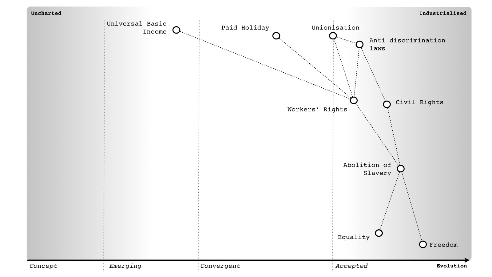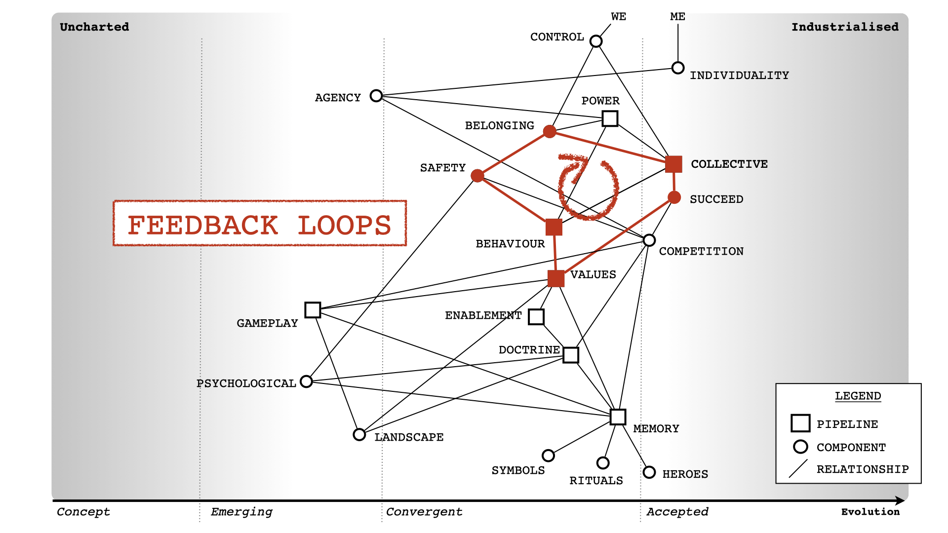 All maps are imperfect representations of a space but they enable people to expose their assumptions in a manner which allows others to safely challenge. I say safely because most organisations run on stories whilst telling everyone that great leaders are great story tellers. When you challenge someone's story, you're actually telling them that they are "not a great leader". People tend to get defensive at this. By putting the story into an imperfect map, I can challenge the map without challenging the person. I can say, I think this map is wrong. It might be missing a component, missing a relationship or having a component which is considered less evolved than it really is.