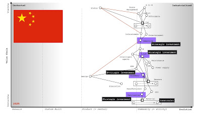 With many maps, you should be able to start to spot duplication. Often you'll find the same component doing the same thing (which can be spotted by relationships being the same on different maps) but called a different name. We love our acronyms and technobabble. Finance tends to be the worst for this btw. A bit of duplication is not a bad thing (for reasons of avoiding systemic failure) but it should a conscious choice. Anyway, the Intelligence Function should be able to start not only challenging on the map itself but also suggesting that one group goes to talk to another group because they are building similar components (see figure 8).